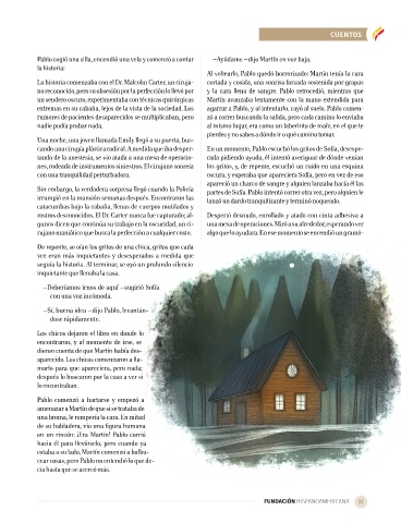 nes, rodeada de instrumentos siniestros. El cirujano sonreía los gritos, y, de repente, escuchó un ruido en una esquina