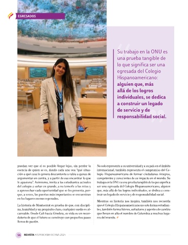 le apasiona”. Asimismo, invita a los estudiantes actuales trabajo en la ONU es una prueba tangible de lo que significa