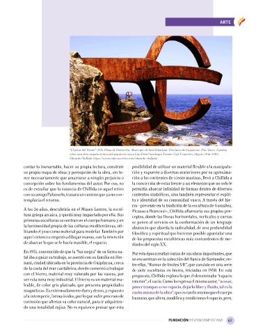 A los 24 años, descubriría en el Museo Louvre, la escul- Picasso o Brancusi–, Chillida afianzaría sus propios pre-