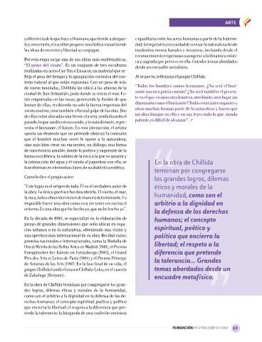 de nueve toneladas, Chlillida las ubicó a las afueras de la “Todos los hombres somos hermanos. ¿No será el hori-