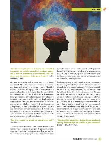 Creo que nuestra dignidad humana para que realmente Las futuras generaciones bien podrán opinar que nosotros
